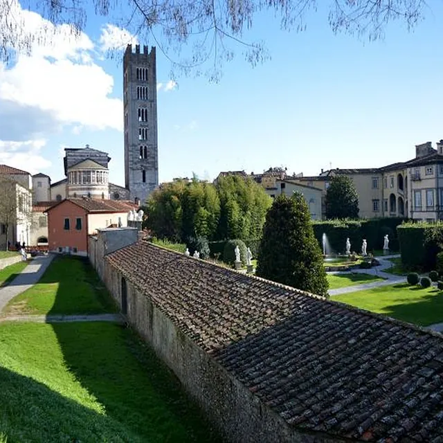 Vi starter ved Porta San Pietro. Deretter spaserer vi gjennom brosteinsbelagte gater og smug til Piazza Anfiteatro og fortsetter mot kirken San Francesco, og passerer gjennom Porta dei Borghi. Herfra kommer du tilbake for en tur rundt renessansebymurene som omgir byen. En deilig tur for å kjenne Lucca.